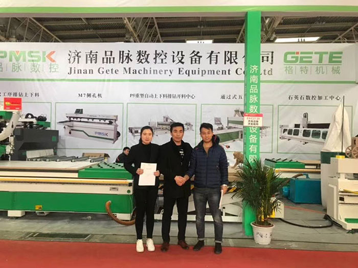 2018年品脈數(shù)控參展北京建博會取得圓滿成功,現(xiàn)場簽訂河北滄州崔總、遼寧錦州王總、聊城張總、河北廊坊吉總、吉林長春趙總、湖南岳陽朱總,河北保定丁總、德州王總、石家莊張總、李總,四川達州劉總,安徽阜陽王總,河南信陽周總,西安邢總,青島李總展會現(xiàn)場訂購品脈數(shù)控板式家具數(shù)控生產(chǎn)線設(shè)備。