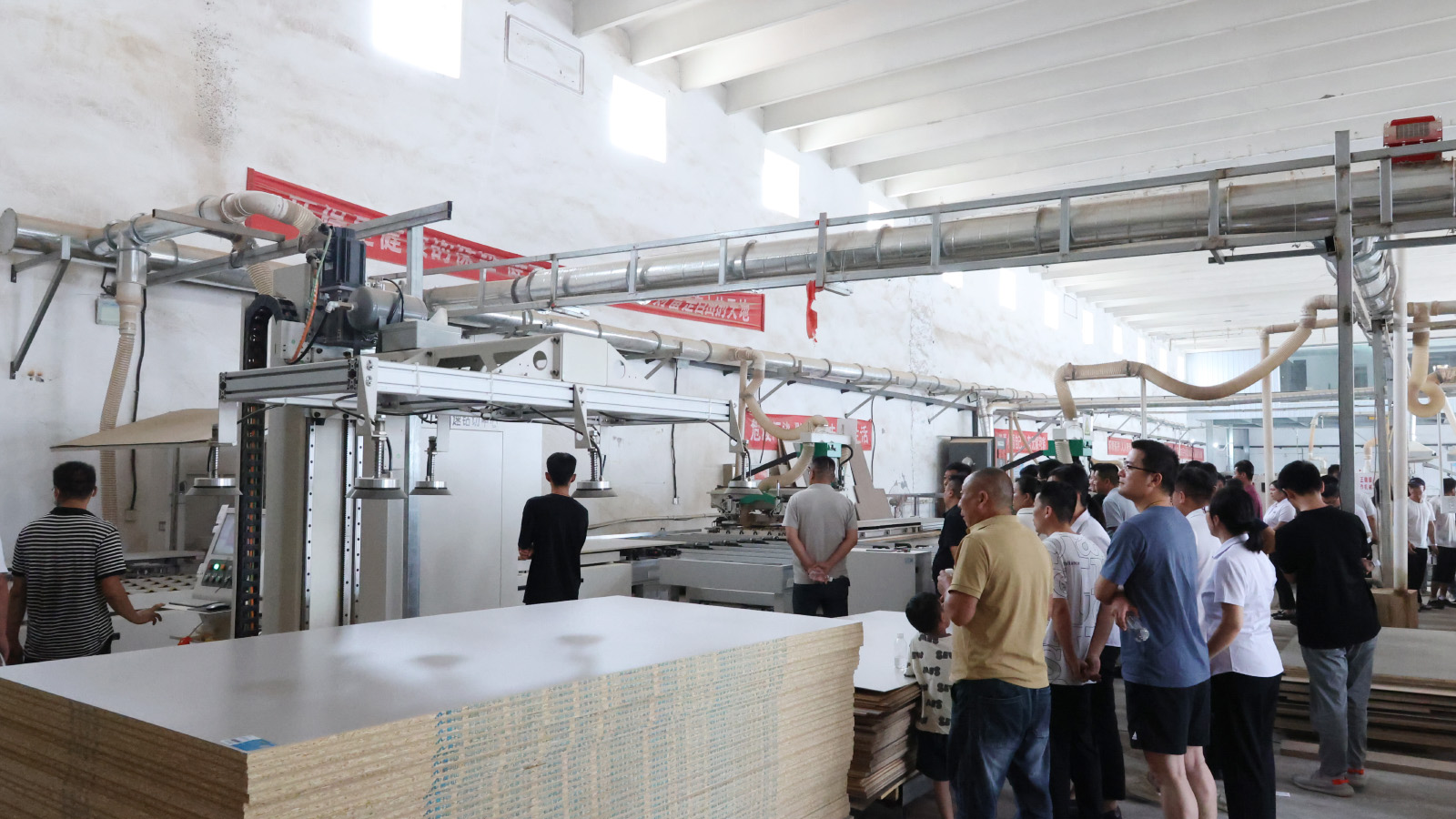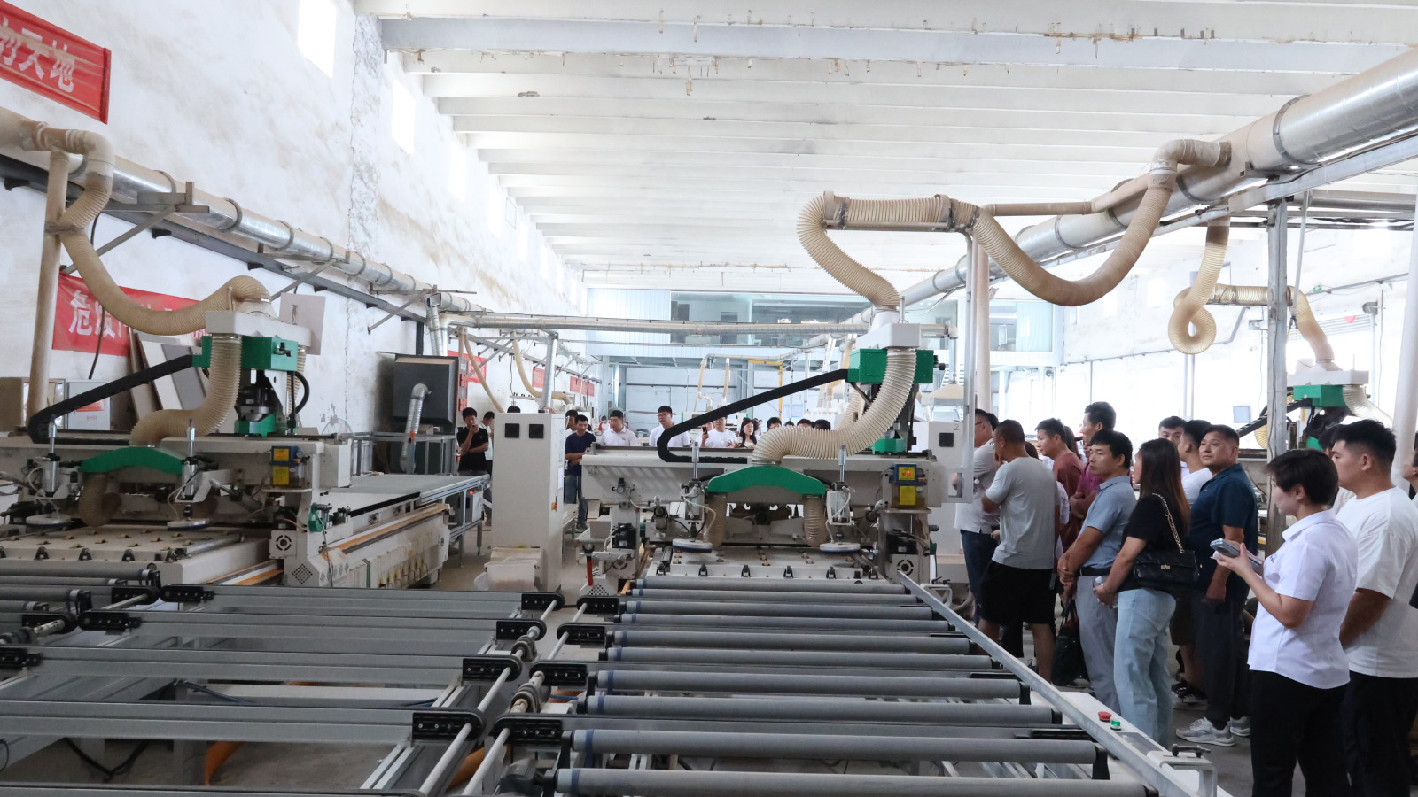 及自動(dòng)化技術(shù)的優(yōu)勢(shì),實(shí)地參觀了和益宅配及每屋美家兩家家具企業(yè)的生產(chǎn)現(xiàn)場(chǎng)。讓嘉賓們親身感受品脈數(shù)控高速鉆切中心及單元連線為板式家具廠降本增效,產(chǎn)能升級(jí)帶來的實(shí)際應(yīng)用效果。