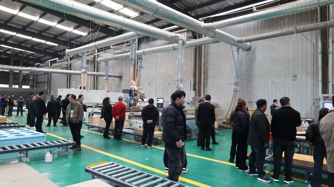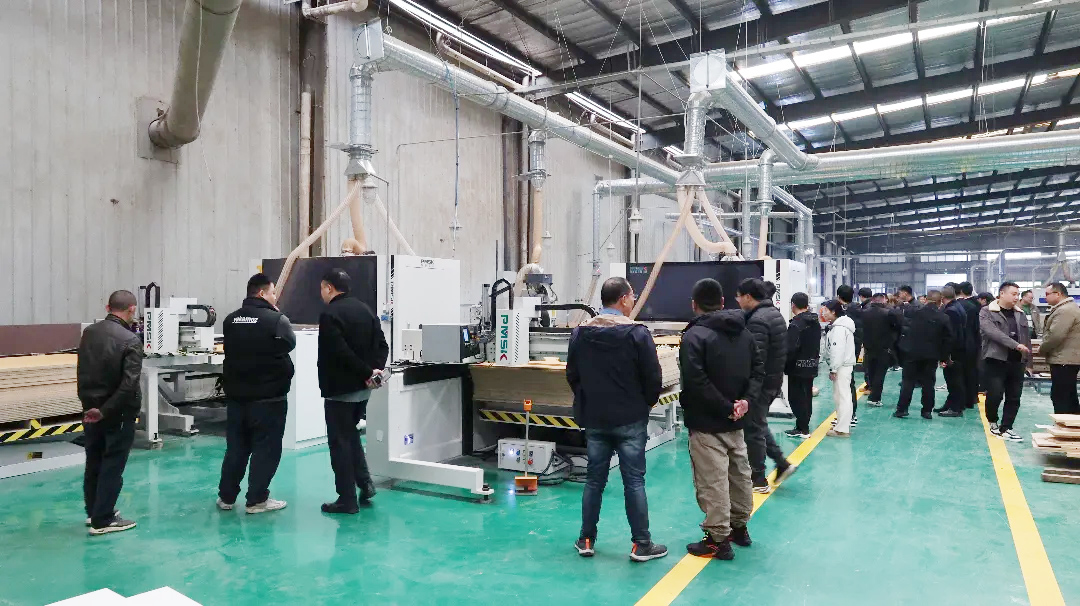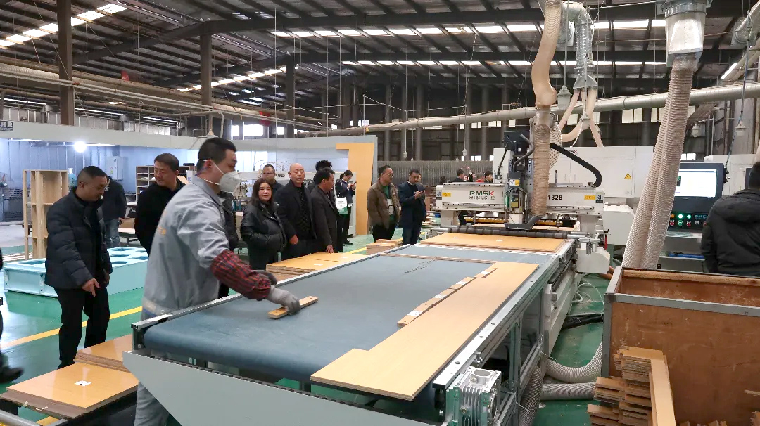 為了讓嘉賓切身體會PT5及自動化技術(shù)的優(yōu)勢,活動組織實地參觀了四川云貴辦公家具企業(yè)的生產(chǎn)現(xiàn)場。讓嘉賓們親身感受品脈數(shù)控PT5高速鉆切中心為板式家具廠降本增效,產(chǎn)能升級帶來的實際應(yīng)用效果。