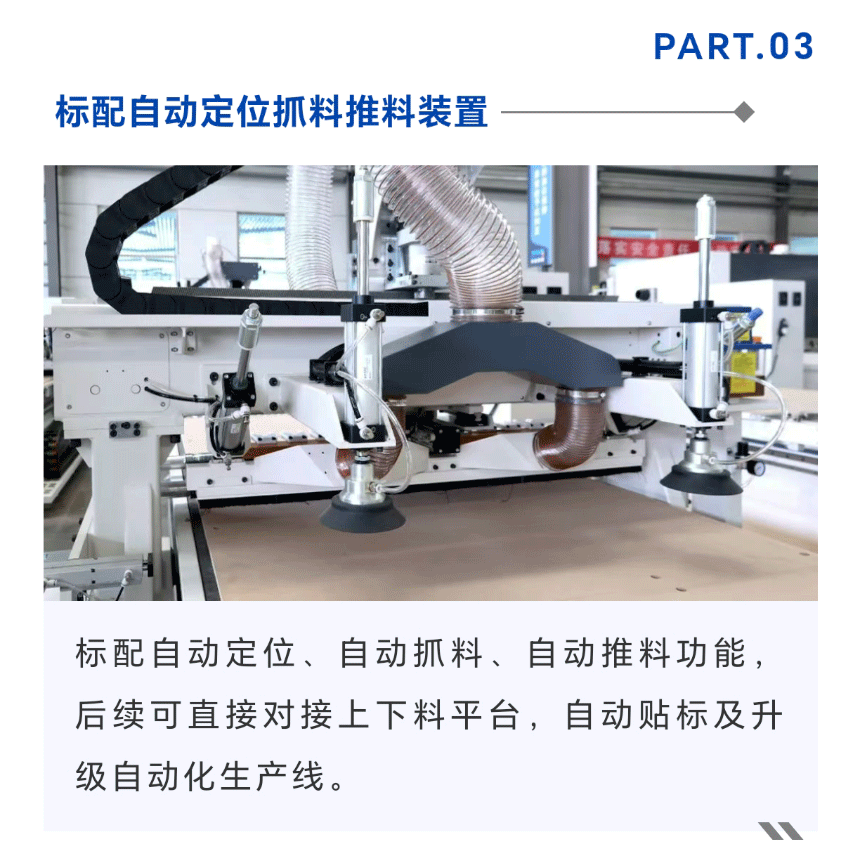 品脈數(shù)控EA48G直排換刀加工中心主要用于板式家具柜體以及櫥柜門板的生產(chǎn)加工,設(shè)備搭配9KW自動換刀主軸和12容量排式刀庫,一次裝夾可快速實現(xiàn)鉆孔、開槽、銑形、雕刻、切割下料等工序。